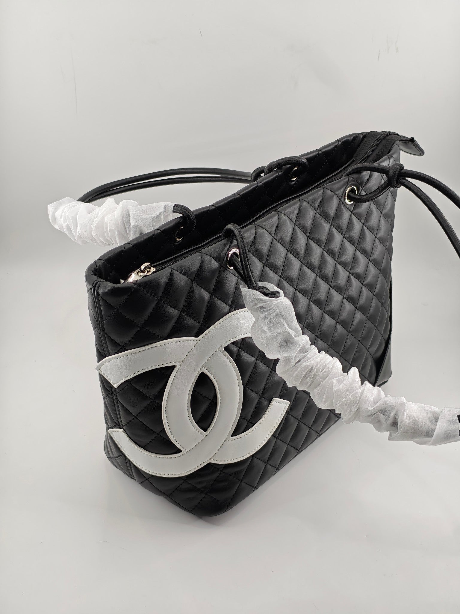 Vylepšete si každodenní nošení s touto elegantní prošívanou taškou s nadčasovým černobílým kontrastem a hladkým koženým povrchem.